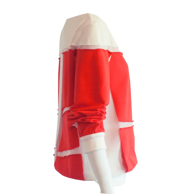 The image is completed by a wrap color blocks mini skirt with pleats and juxtapositions in the front, in contrast with a clean, simple back, all elements that add to the dramatic effect of the outfit. Because this outfit, just as the scene it was inspired by, is all about drama, drama, drama.